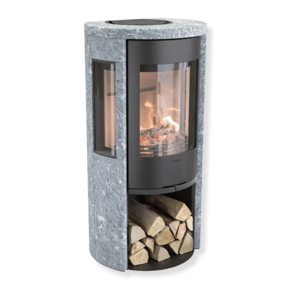 Täljstenen är inte bara vacker med sin naturliga ådring – den har också utmärkta värmelagrande egenskaper som ger en jämn och behaglig temperatur i hemmet. Med en vikt på över 100 kg bidrar den till långvarig värmespridning och hög verkningsgrad.