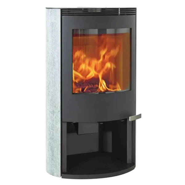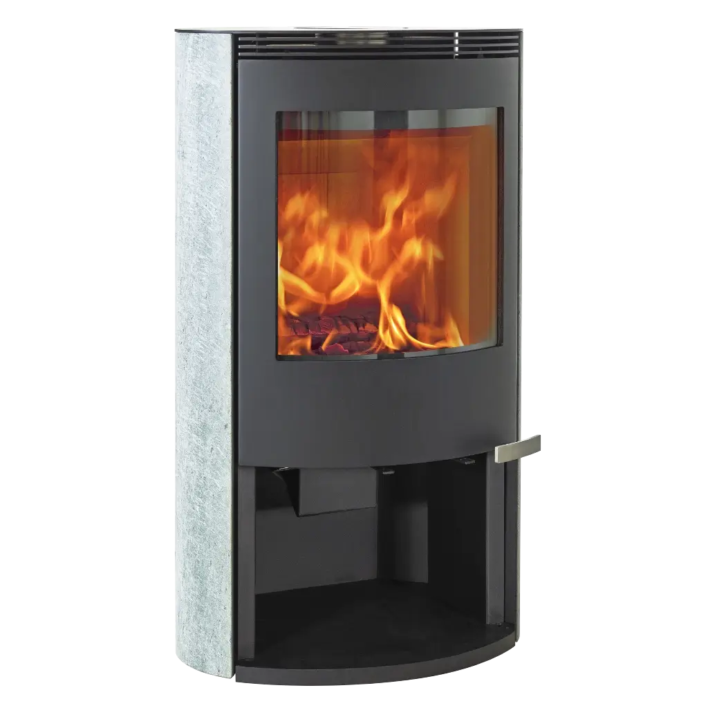ILD 11 ECO är en elegant vedkamin klädd i vacker serpentinsten – ett naturligt material som inte bara ger kaminen ett exklusivt utseende, utan också lagrar värme och avger den länge efter att elden slocknat. Det gör kaminen till en både estetisk och funktionell mittpunkt i rummet.