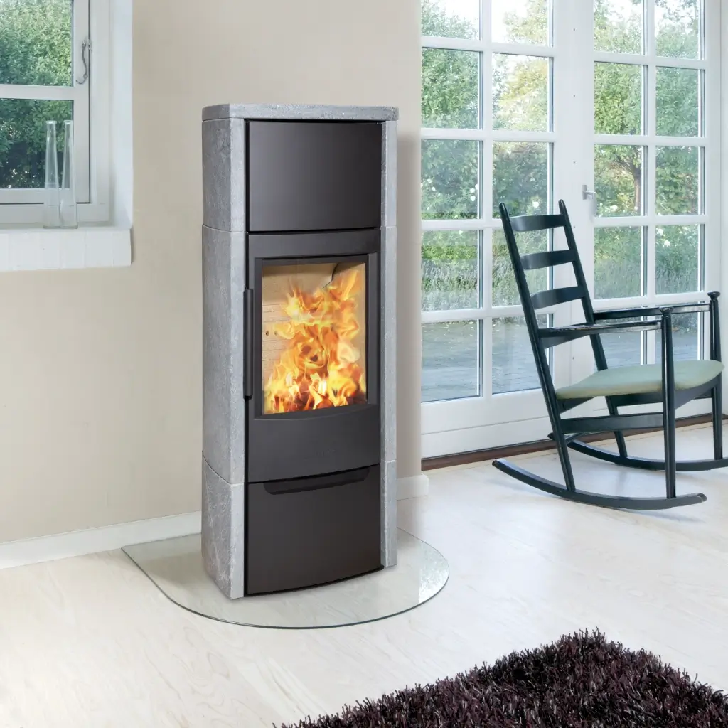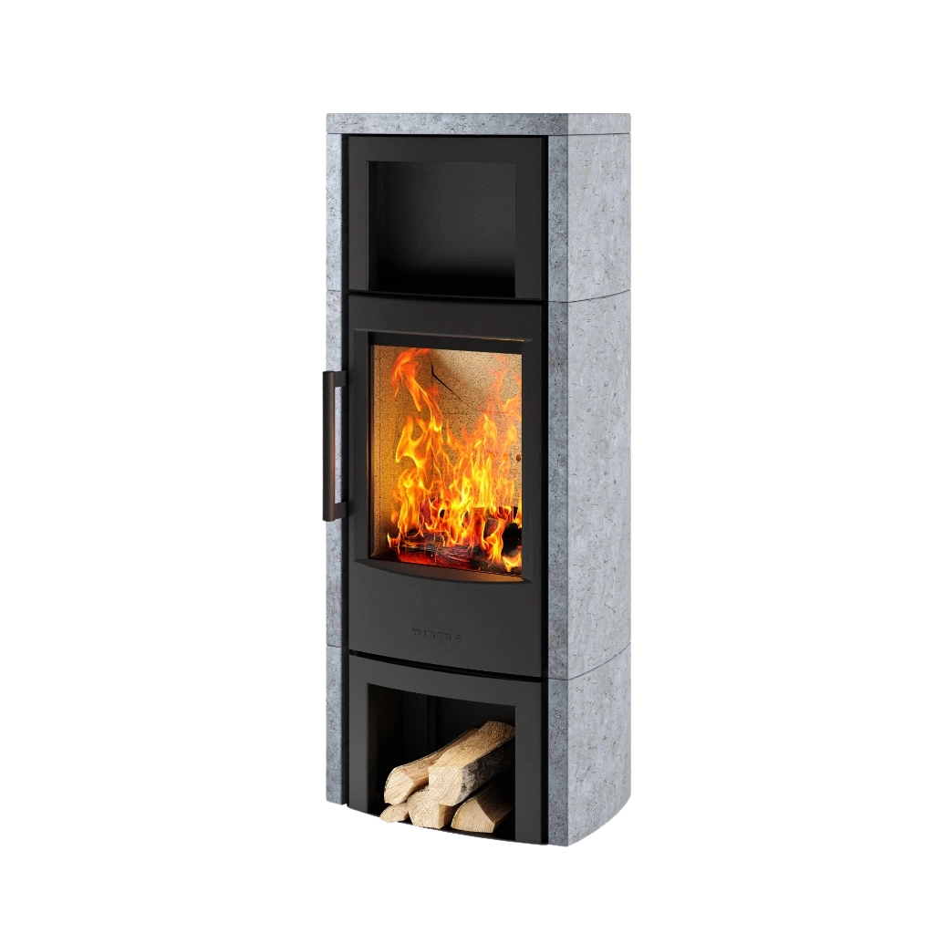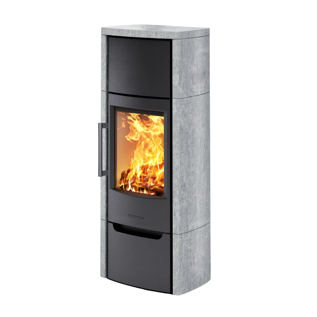 Wiking Miro 6 Täljsten är en kraftfull braskamin utrustad med ett värmelagringsfack som kan fyllas med natursten. Täljstenens unika egenskaper gör att den effektivt lagrar värmen från braskaminen och sakta avger den långsamt till rummet, även efter att elden slocknat. Under eldning värms stenarna i värmelagringsfacket upp och fungerar som en värmebuffert som förlänger värmeutsläppet. Den stilrena täljstensbeklädnaden ger inte bara extra värmelagring utan bidrar också med en exklusiv och naturlig design som lyfter hela kaminen. Wiking Miro 6 Täljsten är det perfekta valet för dig som vill kombinera effektiv uppvärmning med elegant estetik.