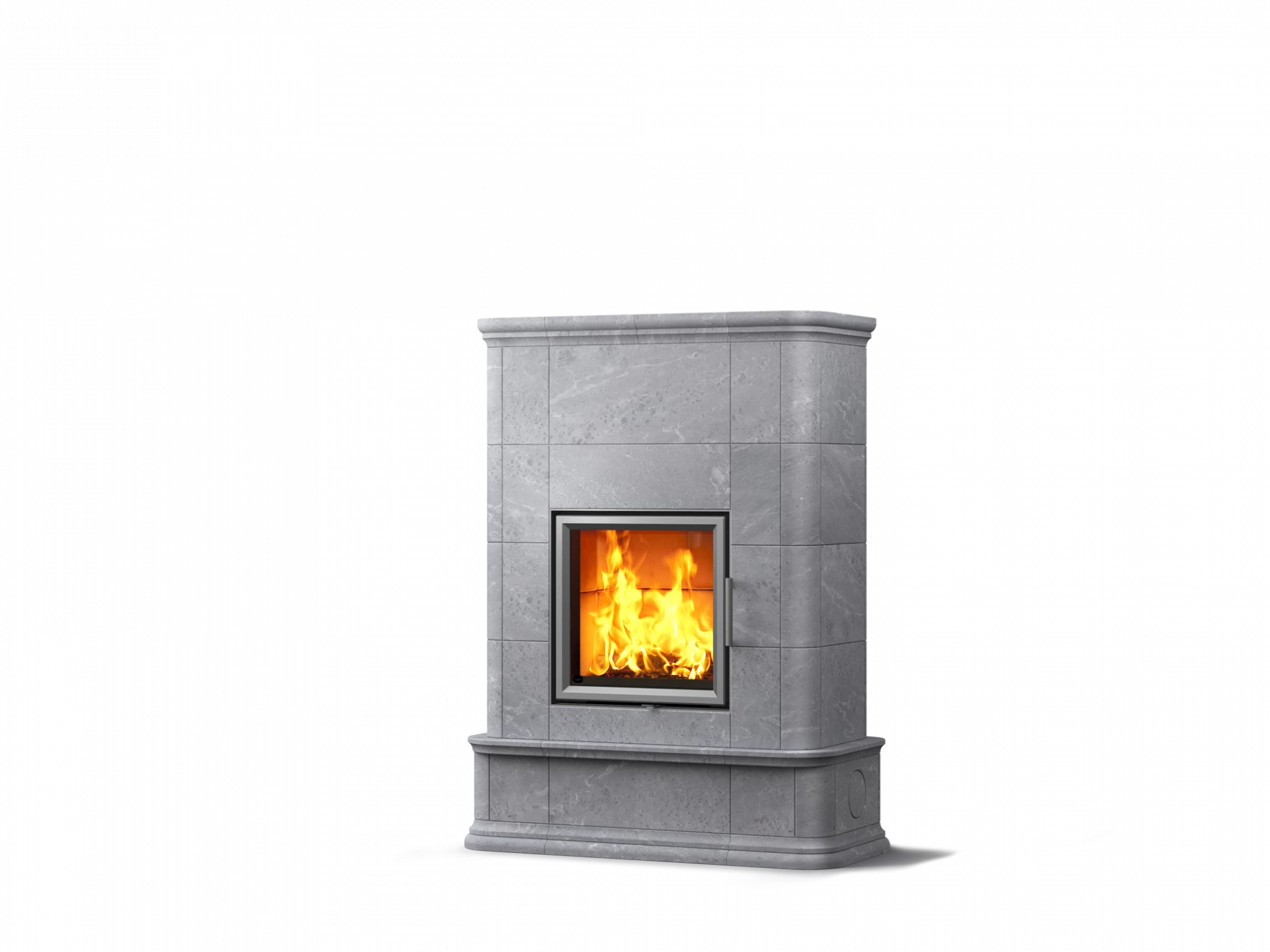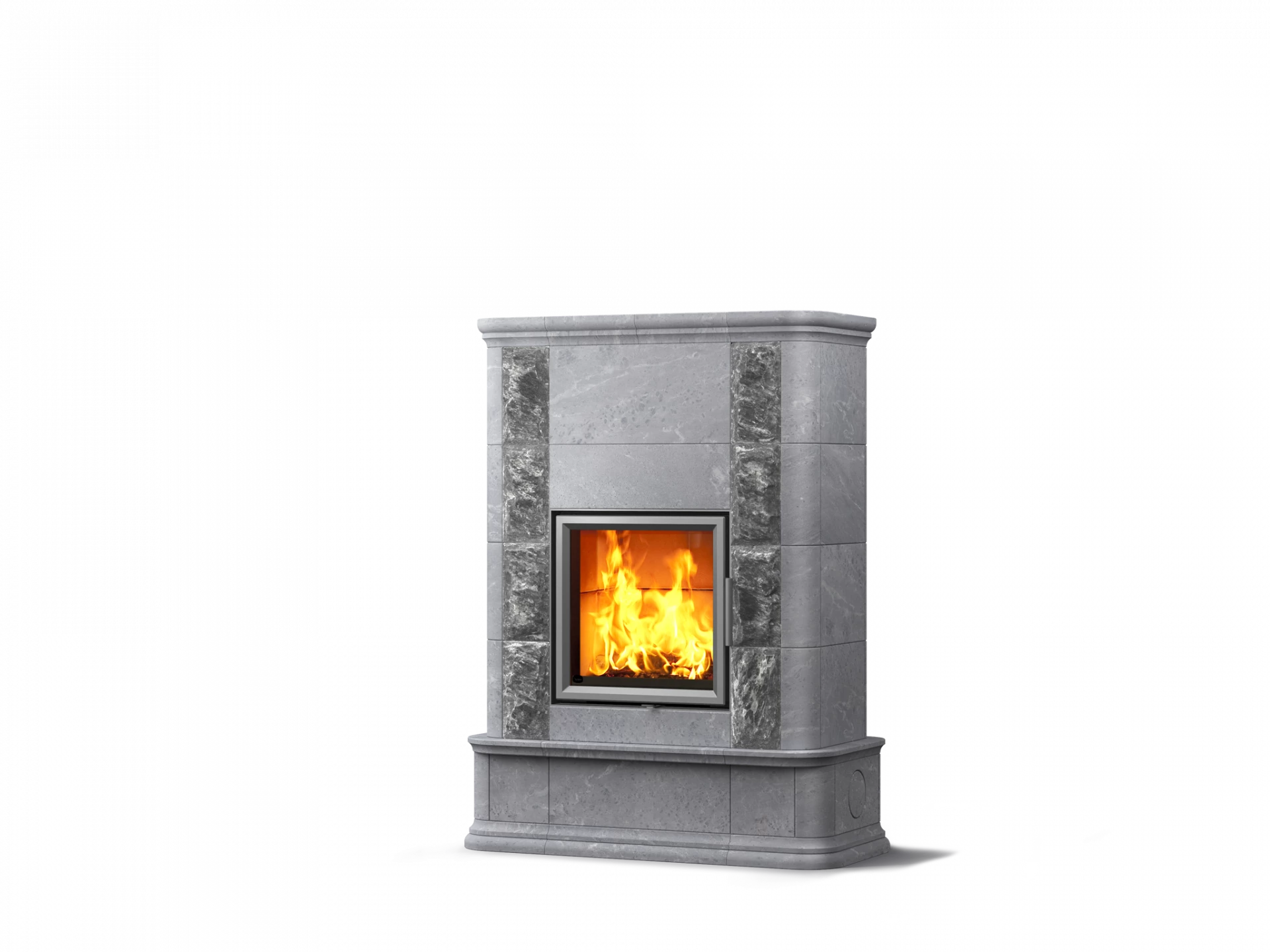 Kaminen är klädd i slät täljsten – helt eller delvis – och kan anpassas ytterligare med dekorplattor längs luckans sidor. Välj mellan ytor som den rustika Natural, mönstrade Grafia eller andra bearbetade ytor som lyfter fram eldstadens unika design.