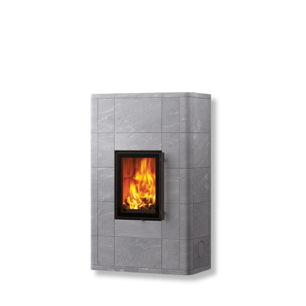 Tulikivi Lampo 15 är den lägsta modellen i Lampo-serien och kombinerar ett kompakt format med en elegant, samtida design inspirerad av eldstaden Salvo. Den höga, vertikala luckan ger ett stilrent intryck och en tydlig eldsyn, medan rundade hörn och plattor i varierande storlekar skapar en harmonisk och mjuk helhet.