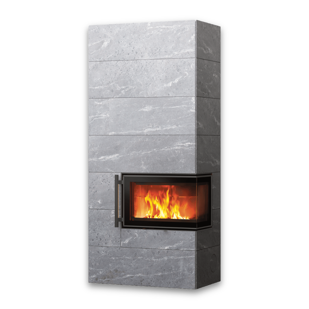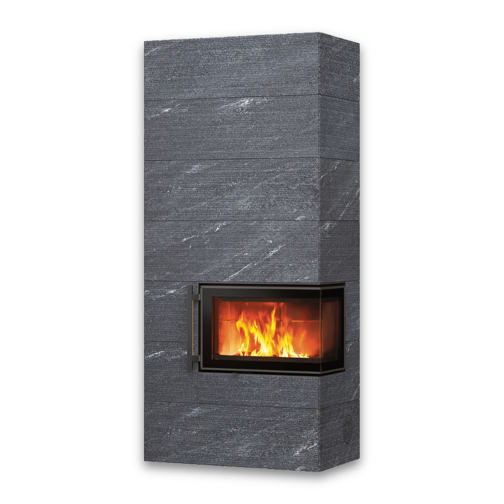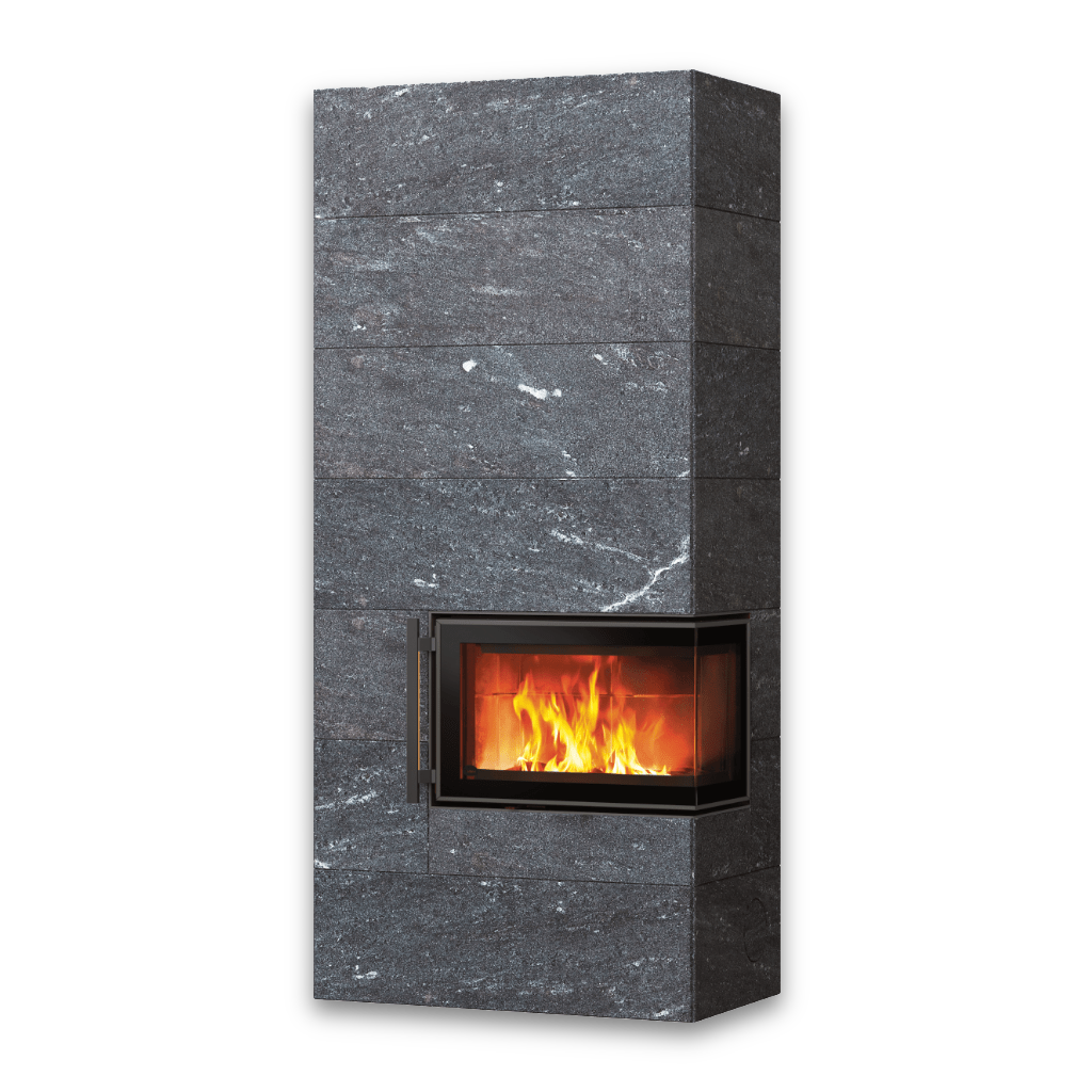 Den naturliga täljstenen fungerar inte bara som ett vackert ytskikt – den lagrar värme effektivt och avger den långsamt och behagligt under många timmar efter att elden slocknat.