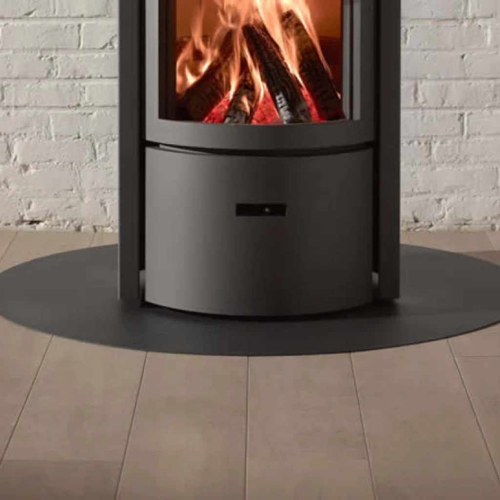 Ge ditt golv det bästa skyddet med Stûvs specialdesignade golvskydd för din Stûv-kamin. Finns i rund eller oval form och tillverkat i robust grått stål, StûvGrey, som både skyddar och kompletterar din kamin på ett elegant sätt. Ett perfekt val för att kombinera säkerhet, funktion och stil i ditt hem.