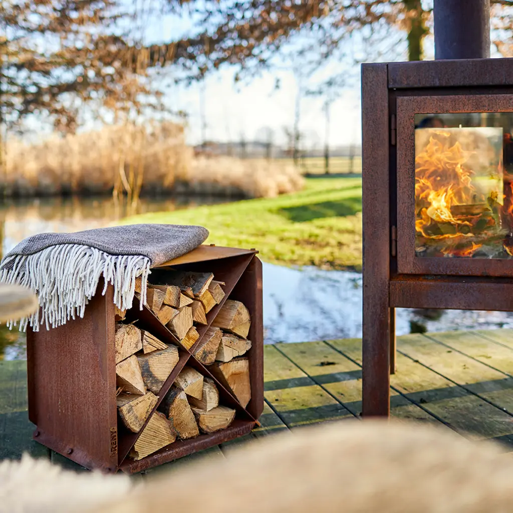 Cortenstålets vackra, rostbruna patina blir bara snyggare med tiden. Det är väderbeständigt, underhållsfritt och tåligt – perfekt för utomhusbruk året runt. Med BloX får du både funktion och design i en modul som lyfter din uteplats och kompletterar din RB73 trädgårdskamin på ett elegant sätt.