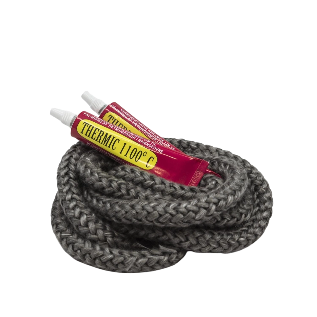 Drevgarnet fungerar som en effektiv tätning som står emot höga temperaturer, samtidigt som det är flexibelt och lätt att arbeta med. Tillsammans med två tuber eldfast lim får du ett komplett och pålitligt kit – redo att användas för både nyinstallation och renovering av din eldstad.