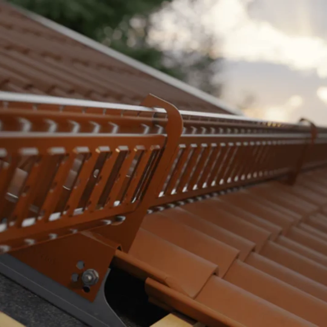Snörasskyddet skyddar mot okontrollerade snöras som kan skada personer, fordon och egendom vid ditt hus. Samtidigt fungerar det som förankringspunkt för personlig fallskyddsutrustning och ger ett stabilt fotstöd vid arbete vid takfot eller takbrott.